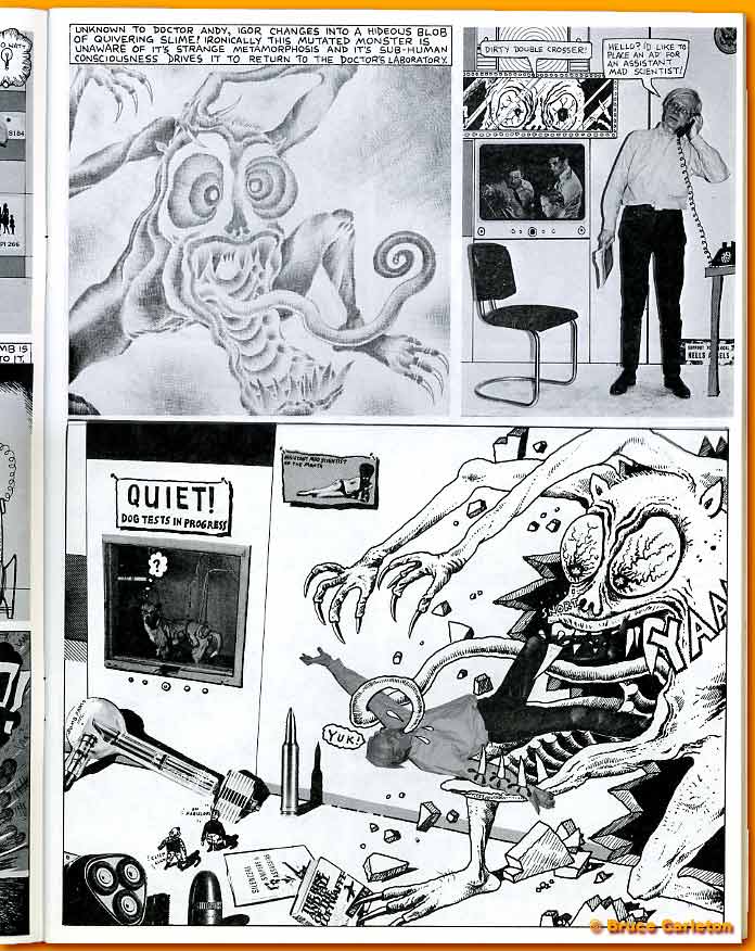 Although the part of The Monster had been cast the summer before I came to work for Punk, it was my job to take his raw talent and turn him into an actor. We all know the stories of monsters who looked great on their posters but failed to deliver when they faced those rolling cameras and the call for "action." But, under my tutelage, The Monster not only held his own with an all-star cast, but more often than not stole the scene. The following series is a tribute to a fine actor, and, you might be surprised to know, a really gentle, loving guy. Below is his debut scene, playing opposite no less than Andy Warhol. I think it would be fair to say that, far from being intimidated by one of the 20th centruy's great artists, he ate him alive.