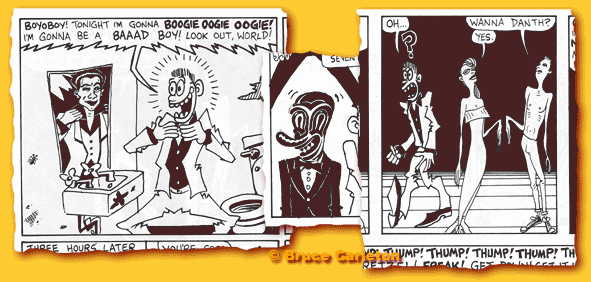 PUNK #16: Disco Maniac (Part 1) Ken Avidor nee Wiener, John Holmstrom and I wrote and drew this. It's hard to tell who did what, since we would sometimes ink each other's pencilings. I'm mainly including my stuff, but John's and Ken's drawings are in here too (e.g. the main character, by John). |