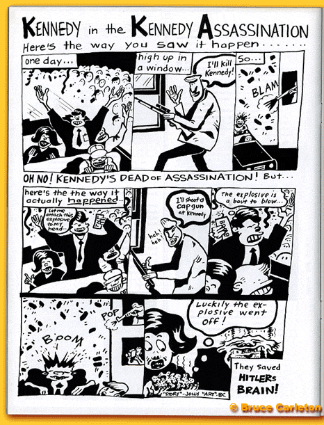 Jolly Prochnik, "Resident Punk," had done some deep thinking about the Kennedy assassination and the subsequent rat's nest of theories. When the answer dawned on him, I was lucky enough to be there. Our attempt to bring his epiphany to light is shown here. Astoundingly, the media didn't pick up on this breakthrough, and as of this writing the only other believer besides ourselves is Mr. Oliver Stone.